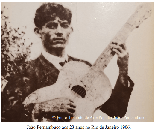 Em 1895, com 12 anos de idade, João Teixeira Guimarães inicia sua trajetória do sertão para o litoral, quando a família mudou-se para Recife, passando a residir no bairro da Torre, onde seu padastro Eugênio começou a trabalhar. Para ajudar a numerosa família, João construiu um carrinho de mão e passou a trabalhar fazendo fretes nas feiras do bairro, no Mercado São José e arredores do Pátio São Pedro por onde seguiu aprendendo a tocar violão com os violeiros, Cirino da Gujurema, Mané do Riachão, entre outros. Aos 13 anos de idade, com parte do dinheiro que ganhava no trabalho de frete, João comprou um velho violão, que passou a ser seu amigo inseprável. Em 1904, já como ferreiro de profissão, conhecido como violonista e compositor por vocação nas rodas de violeiros e cantadores em Recife, João migrou para o Rio de Janeiro, onde já residiam os irmãos e irmãs José, Manoel, Maria e Joana. Na então Capital da República João seguiu desenvolvendo sua arte musical e temperando o aço trabalhando em uma fundição na Rua Frei Caneca no bairro da Lapa e residindo no mesmo bairo em uma pensão na Rua Riachuelo n° 268. O bairro da Lapa era o grande reduto cultural popular da noite no Rio de Janeiro, onde se realizam diversas saraus musicais. Alí, tanto com amigos de trabalho como nas rodas musicais, João contava frequentemente histórias sobre suas origens em Pernambuco e executava suas composições musicais com fortes raízes pernambucanas. Por esta razão passou a ser conhecido como João Pernambuco, sendo reconhecido como o primeiro músico a difundir a música pernambucana e nordestina, que posteriormente viria fazer imenso sucesso em todo Brasil.